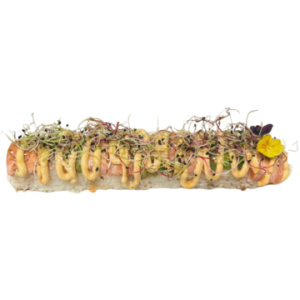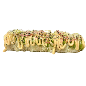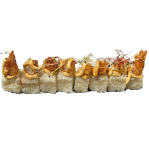 Crevette tempura, avocat, cream cheese, spicy mayo, teriyaki, sésame