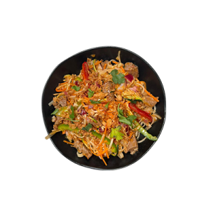 Choisis ta base, ta viande, ta sauce et ton topping. Accompagné de légumes sautés au wok : poivrons, oignon, carottes, courgette, pousses de soja, et coriandre, boisson et dessert">